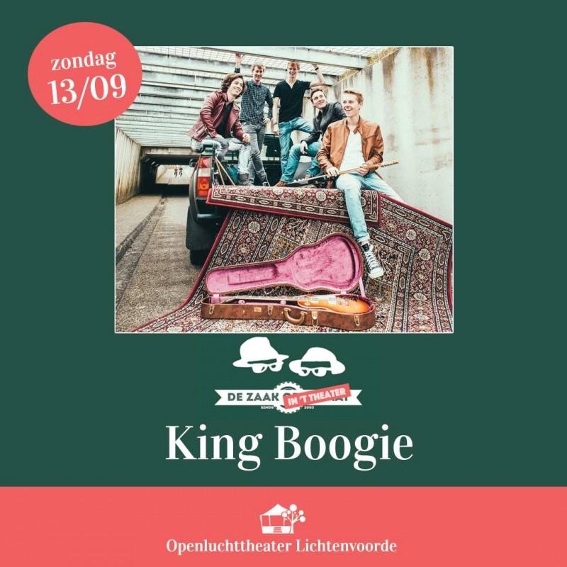 King Boogie is een jonge, frisse en energieke pop/rock coverband bestaande uit vijf Achterhoekers, die muziek spelen met een grote voorliefde voor hun vaders platencollectie. Of het nu gaat om dansbare muziek van Elvis Presley, Queen, Beatles en Rolling Stones of het betere gitaarwerk van AC/DC en U2, of meezingers van Nederlandse bodem. Alles komt voorbij tijdens een avondje King Boogie.